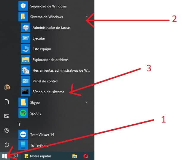 INICI> Sistema de Windows> Símbol de Sistema