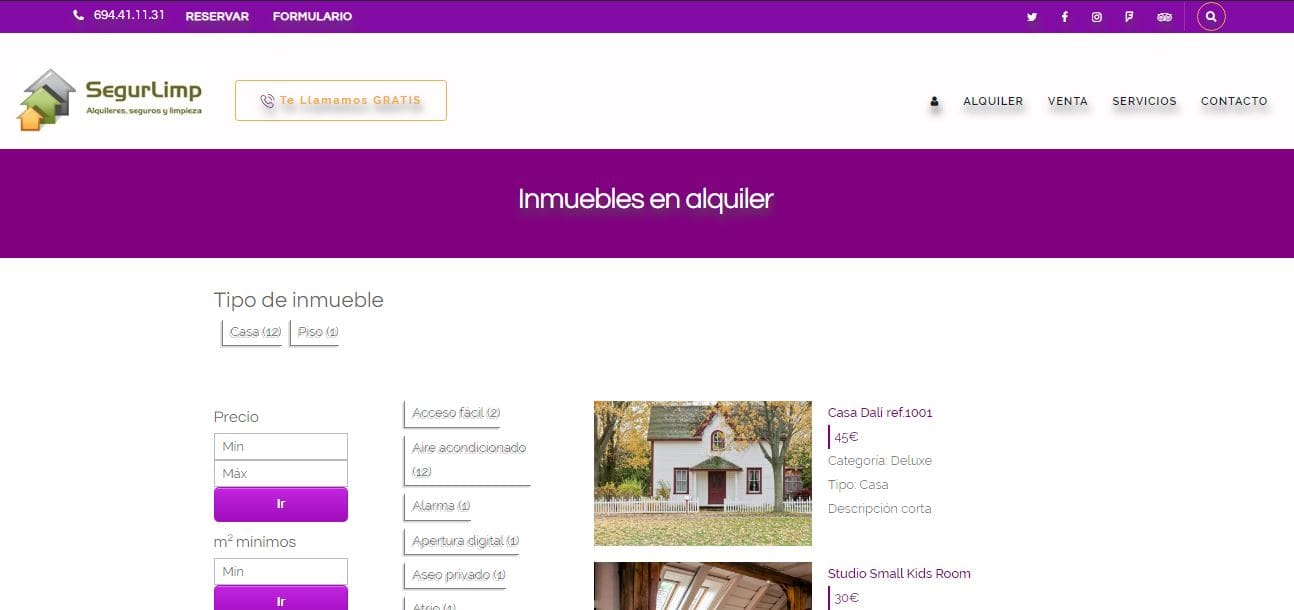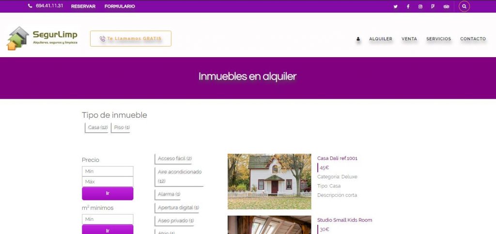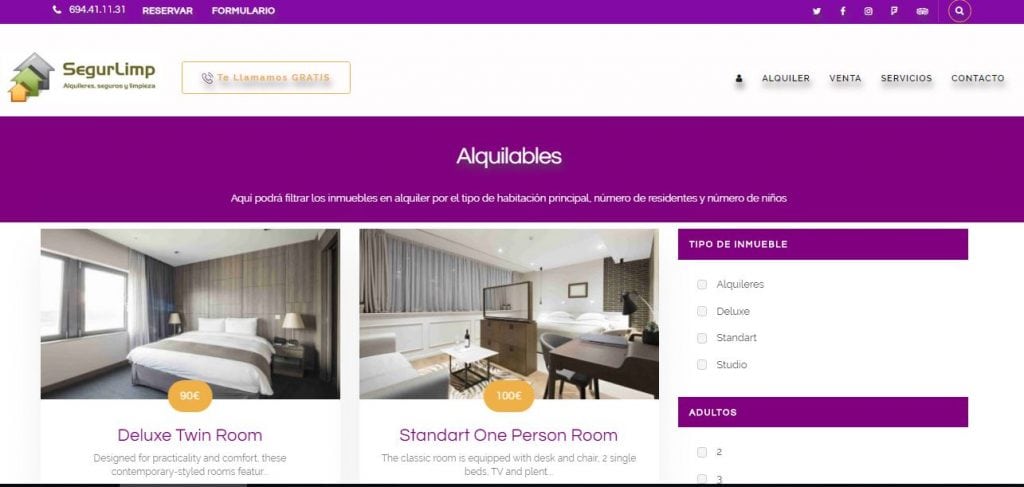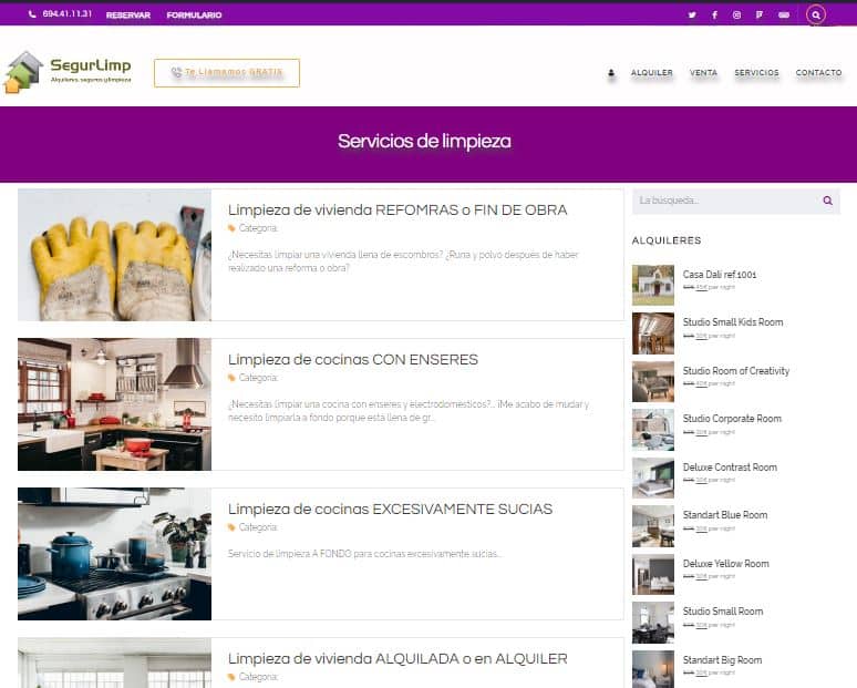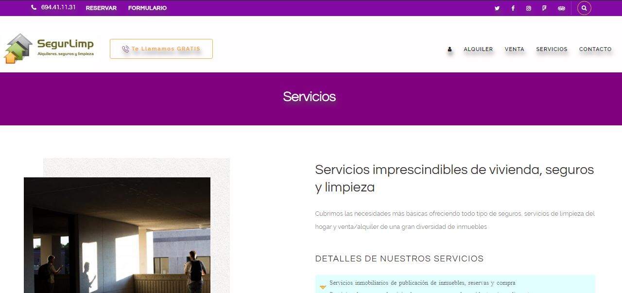 SegurLimp és una empresa que ofereix 3 tipus de serveis diferents però tots categoritzats com a necessitats bàsiques. Es poden trobar immobles en venda i immobles de lloguer, però a més permet reservar immobles poden llogar i sol·licitar serveis de neteja d’immobles i assegurances especialitzats segons les necessitats.