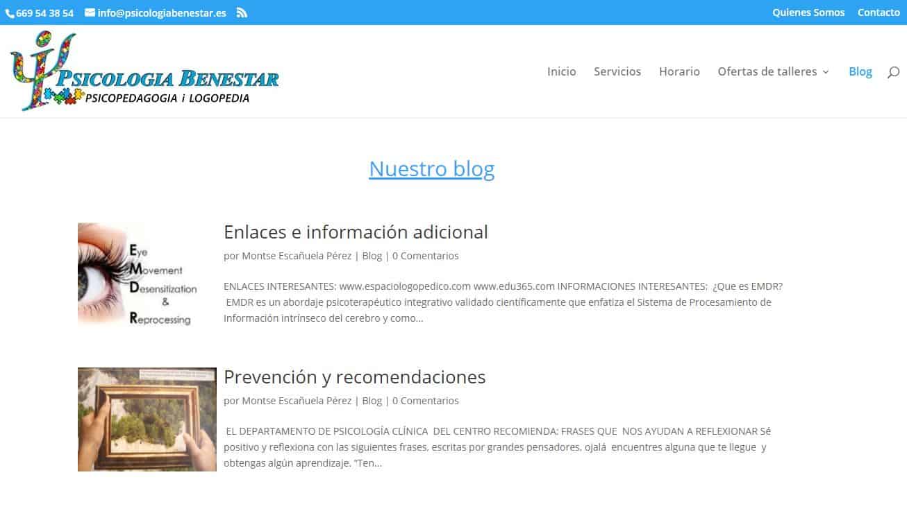 A la nova web de psicologiabenestar.es es poden fer comentaris a les entrades del bloc, en els tallers i més tot supervisat per l’administrador del lloc web.