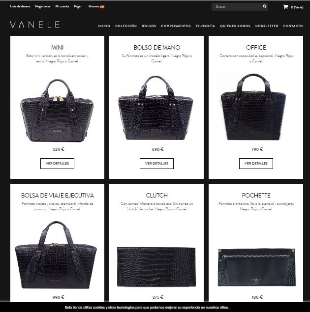 Pots veure el nou disseny de vanele,net directament al seu lloc web actiu. Una botiga en línia de gamma alta per a venda de productes d’alta gama: www.vanele.net