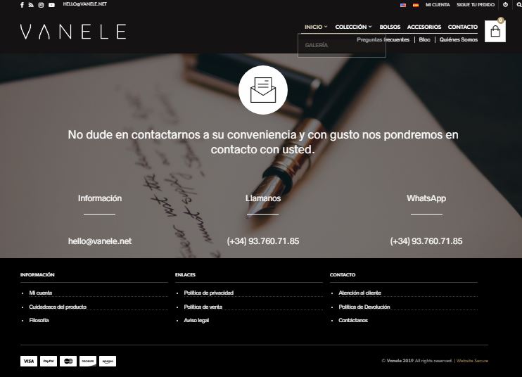 Aquest web portava aproximadament un any muntada en vanele.es. Se’ns va demanar re-fer la botiga en un altre domini perquè l’actual estava donant problemes i era impossible vendre productes a causa de diversos problemes; L’últim relacionat amb el mòdul d’enviaments va ser per a mi client la gota que va fer vessar el got. Decidint tallar en sec amb la plataforma Prestashop (el gestor de productes que utilitzava en vanele.es) i encarregar la tasca de construir un nou lloc web amb més funcionalitats i més control sobre el disseny i contingut.