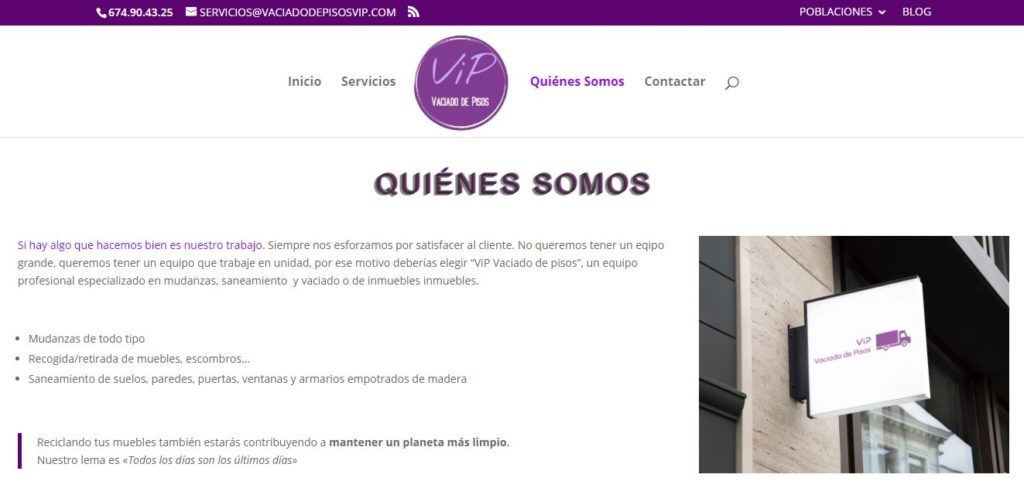 La construcció d’vaciadodepisosvip.com, una altra web amb serveis de mudances, sanejat i buidat d’immobles amb seu a Badalona es va muntar per 3 motius principals: